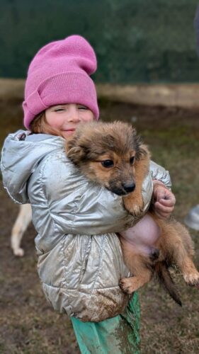 Nos chiots cohabitent avec d’autres chiens, mais ne côtoient pas d’enfants ou de chats au refuge ; au vu de leur jeune âge, nous n’effectuons pas de test chat avec eux puisque nous partons du principe qu’en les sociabilisant correctement, ils peuvent tout à fait s’habituer à la vie de famille avec différentes espèces. C’est à vous de leur apprendre à vivre en harmonie avec vos autres animaux et vos enfants, qui doivent se montrer respectueux à l’égard du nouveau venu. Une cohabitation saine et apaisée met plusieurs semaines, voire mois à se mettre en place. Patience est de mise pour que tout le monde trouve sa place.