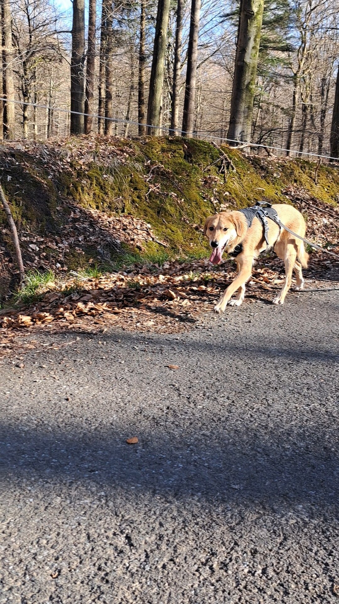 Character : 8 avril 2026: Deux grosses heures de balade dans les bois aujourd’hui . Mettre le harnais était à nouveau compliqué, même cinéma que la veille, mais ça en valait la peine. Il a été à nouveau formidable ! Mais un peu fatigué après