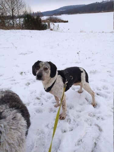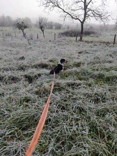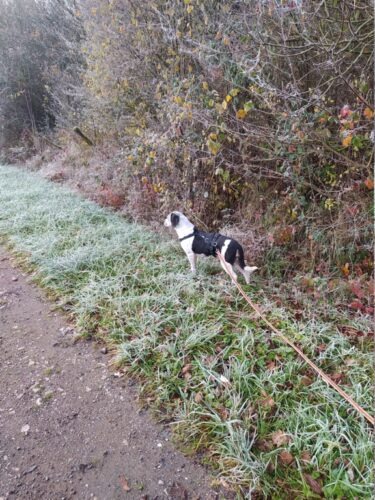 9 décembre 2025 : Après un peu plus d’un mois à la maison, Copernica (Copette pour nous lol! ) s’est bien intégrée et habituée aux rythmes de la maison. Les balades sont vraiment un gros plaisir pour elle, elle profite pleinement (même si elle a très peur si l’on croise des gens qu’ils soient seuls ou avec un chien). Le moment d’attacher la laisse est encore un stress pour elle, tout comme la moindre « manipulation »(lorsque je dois resserrer les sangles du harnais par exemple)