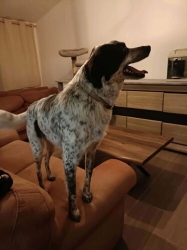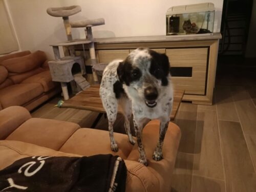 1er février 2026 : Deltyva a eu les rappels vaccins la semaine passée. Elle pèse 17,4kg. La veto a vérifié son hernie ombilicale, pas de changement donc c’est toujours OK. C’est une super chienne quand elle connaît, le problème est quand elle ne connaît pas, elle est protectrice. Quand quelqu’un rentre chez elle, elle aboie, grogne, et madame doit la tenir sinon elle pourrait aller mordre. Il faudrait donc que les adoptants potentiels soient d’accord de venir la voir plusieurs fois. C’est ce qu elle a fait avec des amis à elle et maintenant ça se passe bien, ils peuvent même venir s en occuper quand madame n est pas là. Comme elle ne travaille plus actuellement, elle est fort disponible pour les éventuels adoptants. Elle est ok chiens et ok chats. Enfants à éviter. Et idéalement un autre chien dans la famille.
