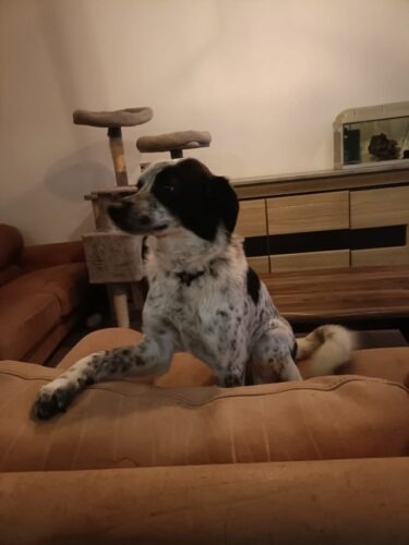Deltyva est une chienne adorable qui a su s’adapter relativement vite à son nouvel environnement. Elle s’entend très bien avec mes deux chiens, mais attention tout de même au moment des repas où elle peut montrer les dents si un chien approche de sa gamelle. Elle est très très affectueuse ! Elle adore les câlins, les papouilles et être brossée. Elle ne supporte pas être seule trop longtemps, elle a vraiment besoin d’une présence. Les premières bêtises arrivent, mais avec un peu d’éducation ça devrait passer. La propreté est en cours, et les balades en laisse sont géniales ! Elle ne tire pas, c’est un vrai plaisir de se promener !