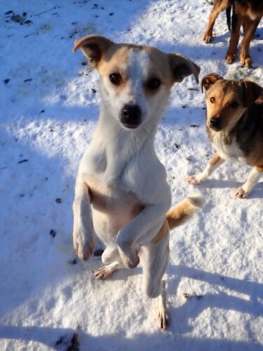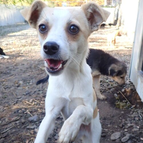 Good with : Cohabite avec les chiens de son box/enclos (cela ne veut pas dire qu’elle s’entendra obligatoirement avec tous les canidés ; chaque animal a ses têtes et ses affinités). Ne pourra pas être placée dans un foyer avec des enfants en bas-âge. N’étant pas manipulable pour le moment, il nous est impossible d’effectuer un test chat sécuritaire pour le félin.