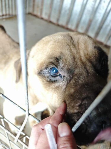 Character : 7 octobre 2025 : GENGIS développe des ulcères cornéens dus à l’entropion. Il semble également avoir les yeux secs. L’entropion pourrait se résorber tout seul quand il reprendra du poids.