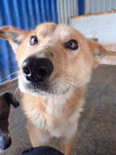 Good with : Cohabite avec les chiens de son box/enclos (cela ne veut pas dire qu’il s’entendra obligatoirement avec tous les canidés ; chaque animal a ses têtes et ses affinités). Ne côtoie pas d’enfants au refuge, mais pourra s’habituer à la vie de famille avec du temps et du travail. Un test chat peut être effectué en cas de demande d’adoption sérieuse uniquement, mais il ne constitue en aucun cas une garantie. En effet, une rapide rencontre effectuée en refuge n’a rien à voir avec une cohabitation sur le long terme dans un nouvel environnement. Patience est de mise pour que tout le monde trouve sa place. C’est à vous de leur apprendre à vivre en harmonie avec vos autres animaux et vos enfants, qui doivent se montrer respectueux à l’égard du nouveau venu. Une cohabitation saine et apaisée met plusieurs semaines, voire mois à se mettre en place.