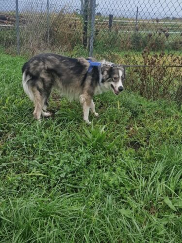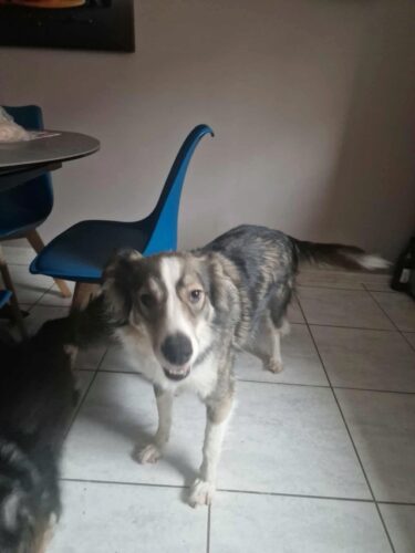 Décembre 2024 : History est arrivée très très perturbée, pour le moment elle n’évolue que très lentement. j’ai réussi à lui mettre un collier, inutile de préciser que les promenades sont exclues pour le moment