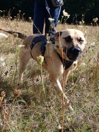 Good with : Cohabite avec les chiens de son box/enclos (cela ne veut pas dire qu’elle s’entendra obligatoirement avec tous les canidés ; chaque animal a ses têtes et ses affinités). Ne côtoie pas d’enfants au refuge, mais pourra s’habituer à la vie de famille avec du temps et du travail. Un test chat peut être effectué en cas de demande d’adoption sérieuse uniquement, mais il ne constitue en aucun cas une garantie. En effet, une rapide rencontre effectuée en refuge n’a rien à voir avec une cohabitation sur le long terme dans un nouvel environnement. Patience est de mise pour que tout le monde trouve sa place. C’est à vous de leur apprendre à vivre en harmonie avec vos autres animaux et vos enfants, qui doivent se montrer respectueux à l’égard du nouveau venu. Une cohabitation saine et apaisée met plusieurs semaines, voire mois à se mettre en place.