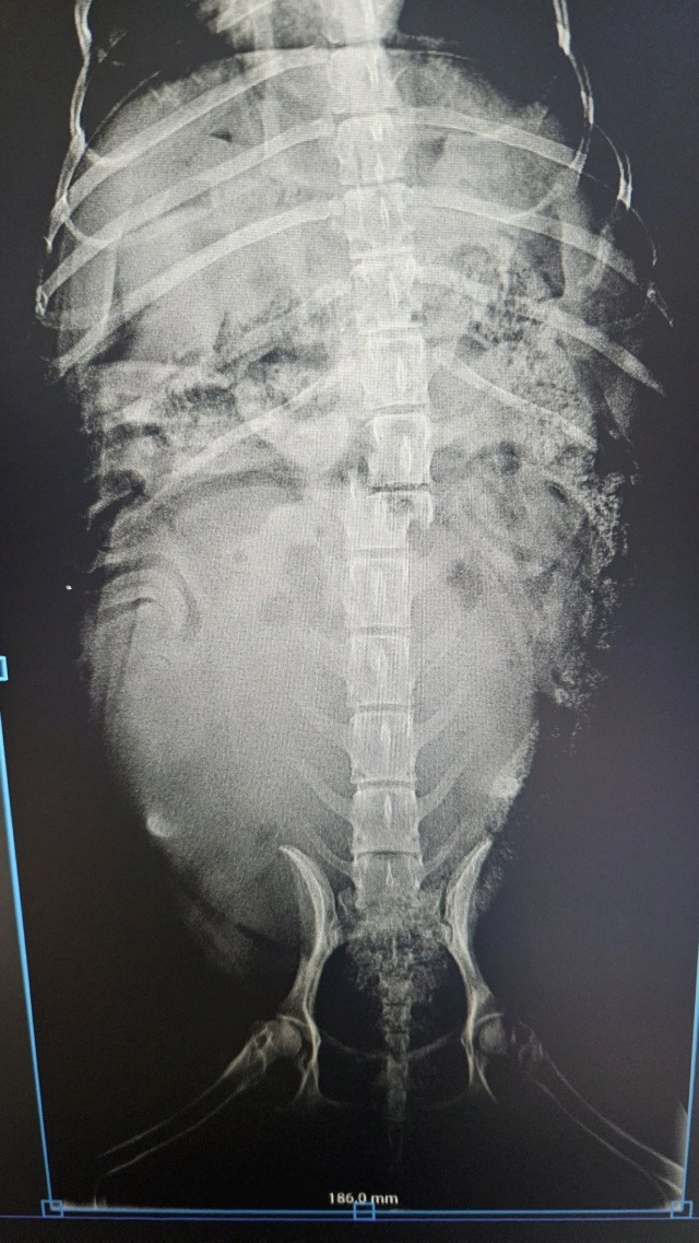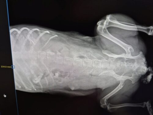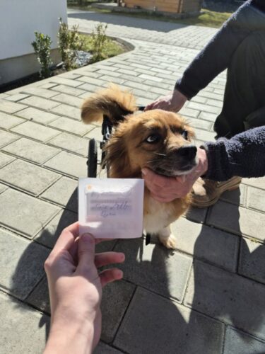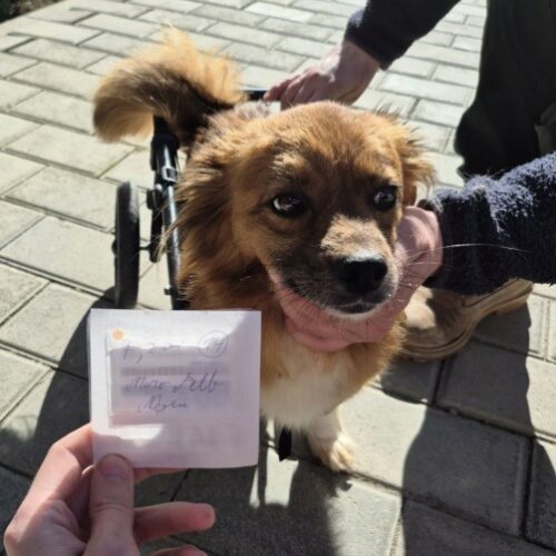 History : Julietta a été amenée dans un carton, avec tous ses bébés, complètement paralysée de l’arrière-train… probablement suite à un accident de voiture. Sa colonne est littéralement coupée en 2… elle a rdv avec un spécialiste mais a très peu de chances de remarcher un jour… Cependant elle a un chariot qu’elle utilise bien et parvient très bien à se déplacer ainsi. Elle n’est pas incontinente.