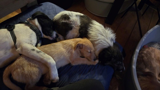 Nos chiots cohabitent avec d’autres chiens, mais ne côtoient pas d’enfants ou de chats au refuge ; au vu de leur jeune âge, nous n’effectuons pas de test chat avec eux puisque nous partons du principe qu’en les sociabilisant correctement, ils peuvent tout à fait s’habituer à la vie de famille avec différentes espèces. C’est à vous de leur apprendre à vivre en harmonie avec vos autres animaux et vos enfants, qui doivent se montrer respectueux à l’égard du nouveau venu. Une cohabitation saine et apaisée met plusieurs semaines, voire mois à se mettre en place. Patience est de mise pour que tout le monde trouve sa place.