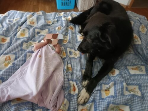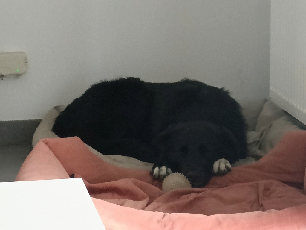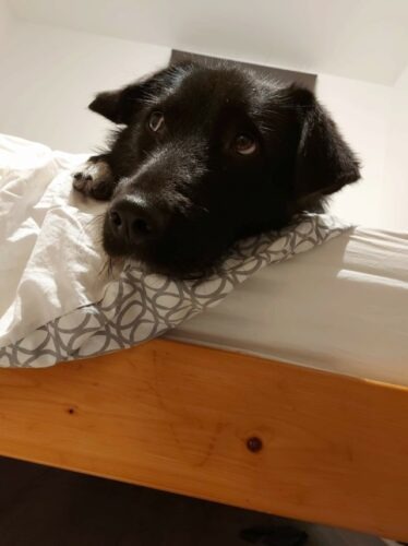 – Présence d’un chien : Milka a grandi à nos côtés avec un autre chien, elle apprécie la compagnie des autres chiens, elle se montre par moment indépendante et s’occupe par elle-même. La présence d’un autre chien peut être un plus mais n’est pas un impératif si une personne est souvent présente.