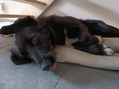 – Peurs: l’orage peut vraiment la mettre dans un état de grande peur, elle halète, bave, court partout, pleure et cherche absolument le contact, il ne faut pas la laisser seule dans la maison face à cela. Elle a aussi peur des feux d’artifice.