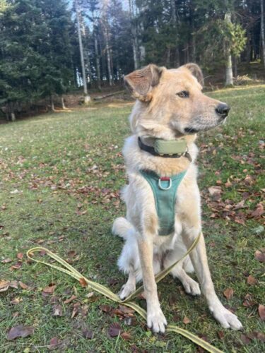 25 août 2025 : Oria progresse toujours très bien. On promène en longe dans des endroits calmes depuis quelques semaines et gère de mieux en mieux les quelques stimulus en gardant suffisamment de distance. Elle n’a plus peur de mes chiens et joue avec aussi bien dans la maison que dans le jardin. Elle a découvert qu’elle adore les caresses et en réclame. Avec mon mari ça s’améliore aussi gentiment, elle l’aboie moins et est capable de rester couchée si il est proche d’elle mais pas de contact possible. C’est une adorable petite chienne câline, très curieuse et très courageuse.