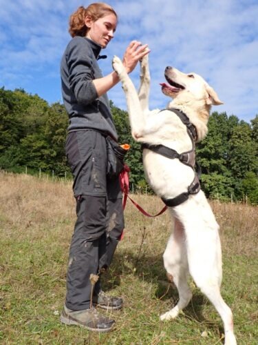 Sociable : Cohabite avec les chiens de son box/enclos (cela ne veut pas dire qu’elle s’entendra obligatoirement avec tous les canidés ; chaque animal a ses têtes et ses affinités). Ne côtoie pas d’enfants au refuge, mais pourra s’habituer à la vie de famille avec du temps et du travail. Un test chat peut être effectué en cas de demande d’adoption sérieuse uniquement, mais il ne constitue en aucun cas une garantie. En effet, une rapide rencontre effectuée en refuge n’a rien à voir avec une cohabitation sur le long terme dans un nouvel environnement. Patience est de mise pour que tout le monde trouve sa place. C’est à vous de leur apprendre à vivre en harmonie avec vos autres animaux et vos enfants, qui doivent se montrer respectueux à l’égard du nouveau venu. Une cohabitation saine et apaisée met plusieurs semaines, voire mois à se mettre en place.