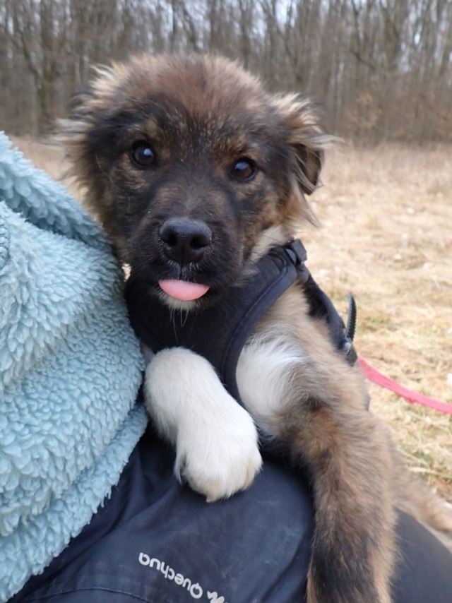 Nos chiots cohabitent avec d’autres chiens, mais ne côtoient pas d’enfants ou de chats au refuge ; au vu de leur jeune âge, nous n’effectuons pas de test chat avec eux puisque nous partons du principe qu’en les sociabilisant correctement, ils peuvent tout à fait s’habituer à la vie de famille avec différentes espèces. C’est à vous de leur apprendre à vivre en harmonie avec vos autres animaux et vos enfants, qui doivent se montrer respectueux à l’égard du nouveau venu. Une cohabitation saine et apaisée met plusieurs semaines, voire mois à se mettre en place. Patience est de mise pour que tout le monde trouve sa place.