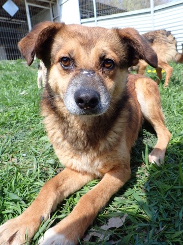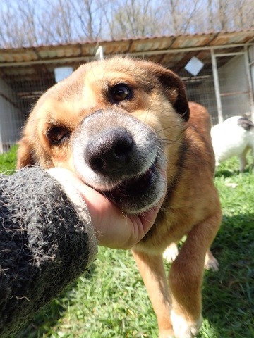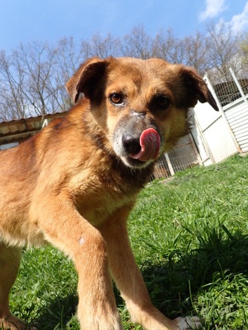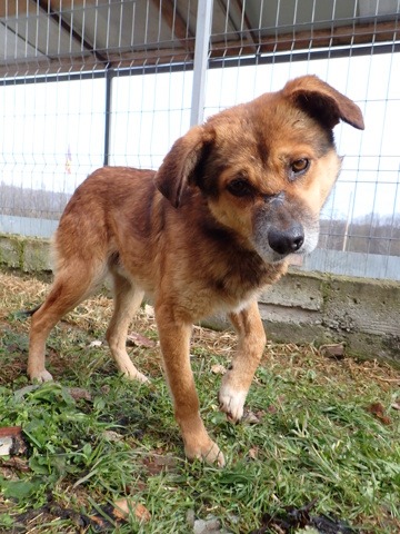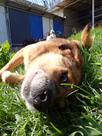History : attrapé par les dogcatchers de Pascani. Il a une ancienne blessure presque guérie au troisième doigt (patte avant droite) dont l’ongle est manquant.