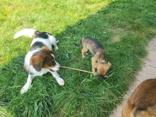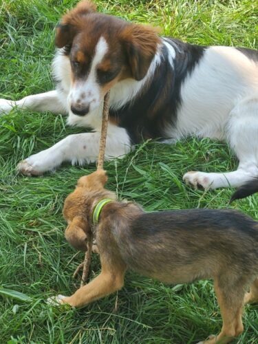06/07/25: Safi se porte bien. Elle est toujours aussi joyeuse, joueuse et câliné. Elle aime surtout jouer avec ses copains. La marche en laisse est en très bonne voie. La propreté est toujours en cours. Son œil à complète dégonfle et devient plus petit. Le prochain contrôle veto se fera début aout