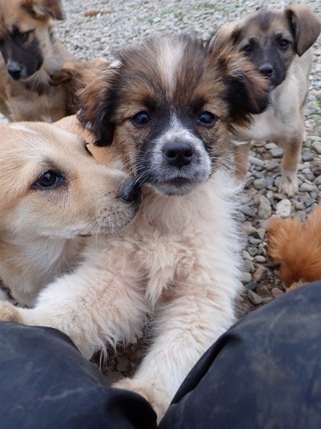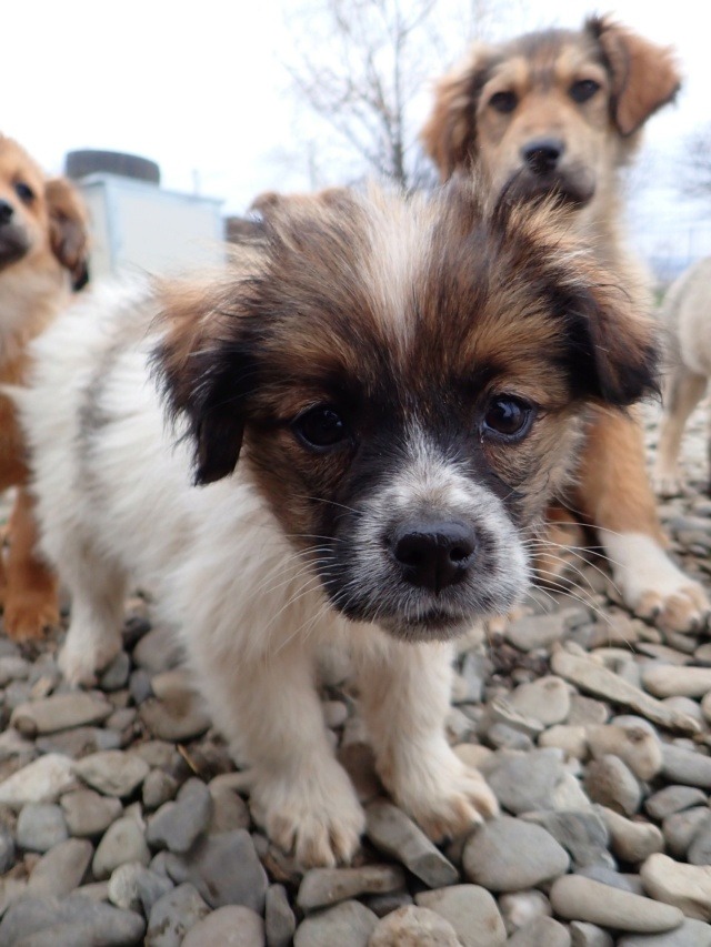Nos chiots cohabitent avec d’autres chiens, mais ne côtoient pas d’enfants ou de chats au refuge ; au vu de leur jeune âge, nous n’effectuons pas de test chat avec eux puisque nous partons du principe qu’en les sociabilisant correctement, ils peuvent tout à fait s’habituer à la vie de famille avec différentes espèces. C’est à vous de leur apprendre à vivre en harmonie avec vos autres animaux et vos enfants, qui doivent se montrer respectueux à l’égard du nouveau venu. Une cohabitation saine et apaisée met plusieurs semaines, voire mois à se mettre en place. Patience est de mise pour que tout le monde trouve sa place.