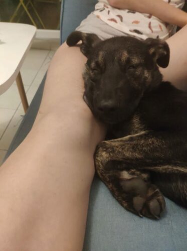 – Sur ses qualités : câlin, joueur, bon gardien, écoute bien, aime les gens (peureux à la première rencontre mais « adopte » vite les gens)