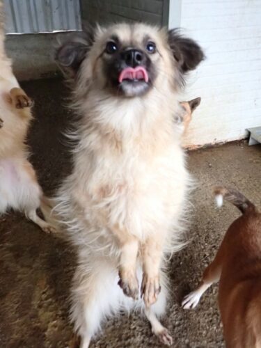 Ententes : Cohabite avec les chiens de son box/enclos (cela ne veut pas dire qu’elle s’entendra obligatoirement avec tous les canidés ; chaque animal a ses têtes et ses affinités). Ne pourra pas être placée dans un foyer avec des enfants en bas-âge. N’étant pas manipulable pour le moment, il nous est impossible d’effectuer un test chat sécuritaire pour le félin.