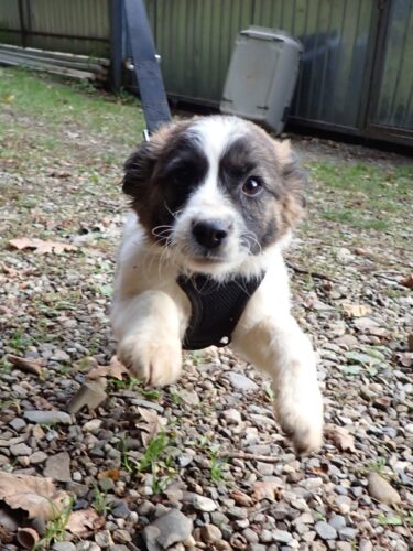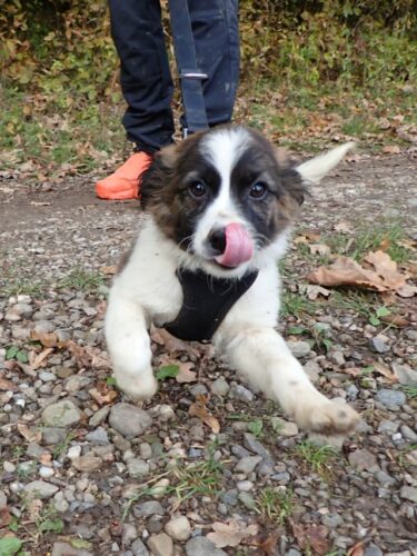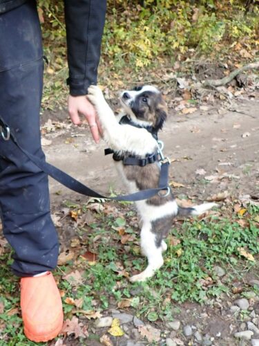 Nos chiots cohabitent avec d’autres chiens, mais ne côtoient pas d’enfants ou de chats au refuge ; au vu de leur jeune âge, nous n’effectuons pas de test chat avec eux puisque nous partons du principe qu’en les sociabilisant correctement, ils peuvent tout à fait s’habituer à la vie de famille avec différentes espèces. C’est à vous de leur apprendre à vivre en harmonie avec vos autres animaux et vos enfants, qui doivent se montrer respectueux à l’égard du nouveau venu. Une cohabitation saine et apaisée met plusieurs semaines, voire mois à se mettre en place. Patience est de mise pour que tout le monde trouve sa place.