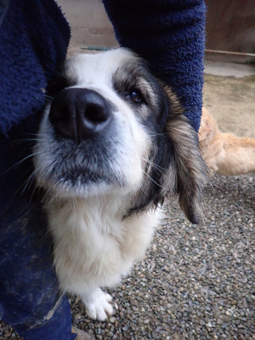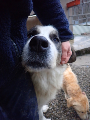 Histoire : elle a été abandonnée dans le village de Motca avec probablement son fils Tauriel. Elle a un épulis sur la gencive supérieure, au niveau des incisives (un épulis est une tumeur bénigne de la gencive qui se développe parfois sur les animaux âgés. Elle se développe lentement et peut causer des douleurs et des saignements)