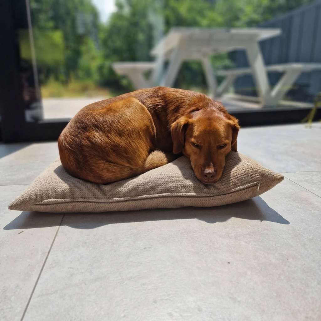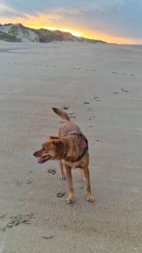 Nous ne savons pas exactement ce qui lui conviendrait le mieux. Il aime joue avec d’autres chiens lorsqu’il dispose de suffisamment d’espace, mais il peut avoir du mal à s’arrêter : si le jeu dure trop longtemps, il peut devenir surexcité et commencer à monter l’autre chien sans parvenir à se calmer spontanément. Comme nous ne l’avons jamais laissé en interaction prolongée avec un seul chien, il est difficile de savoir si, sur le long terme, cela pourrait lui faire du bien si la relation est équilibrée.