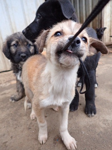 Ententes :Nos chiots cohabitent avec d’autres chiens, mais ne côtoient pas d’enfants ou de chats au refuge ; au vu de leur jeune âge, nous n’effectuons pas de test chat avec eux puisque nous partons du principe qu’en les sociabilisant correctement, ils peuvent tout à fait s’habituer à la vie de famille avec différentes espèces. C’est à vous de leur apprendre à vivre en harmonie avec vos autres animaux et vos enfants, qui doivent se montrer respectueux à l’égard du nouveau venu. Une cohabitation saine et apaisée met plusieurs semaines, voire mois à se mettre en place. Patience est de mise pour que tout le monde trouve sa place.
