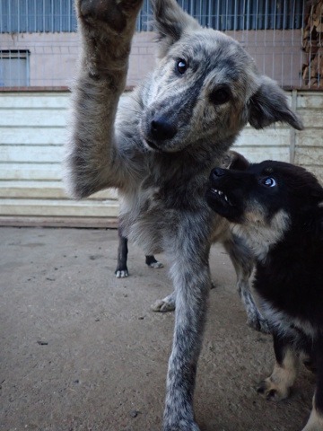 Ententes : Nos chiots cohabitent avec d’autres chiens, mais ne côtoient pas d’enfants ou de chats au refuge ; au vu de leur jeune âge, nous n’effectuons pas de test chat avec eux puisque nous partons du principe qu’en les sociabilisant correctement, ils peuvent tout à fait s’habituer à la vie de famille avec différentes espèces. C’est à vous de leur apprendre à vivre en harmonie avec vos autres animaux et vos enfants, qui doivent se montrer respectueux à l’égard du nouveau venu. Une cohabitation saine et apaisée met plusieurs semaines, voire mois à se mettre en place. Patience est de mise pour que tout le monde trouve sa place.
