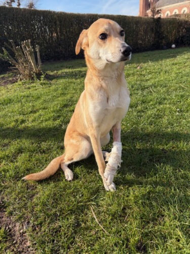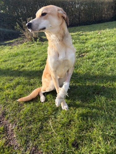Il s’est cassé la patte le 10/09. La broche a été enlevée. Il est encore en soins pendant 15jours.