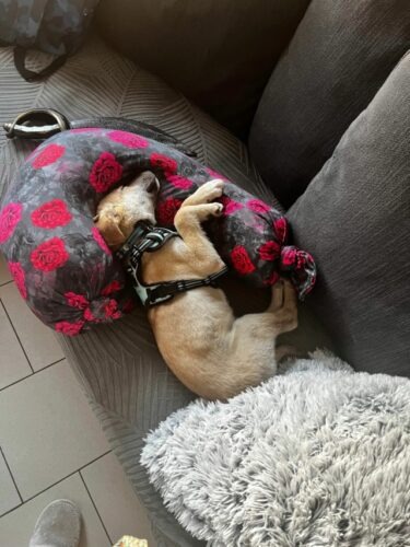 Ou avec des chiens dans la famille il peut passer du temps avec les autres chiens et d’un coup vouloir en pincer un.