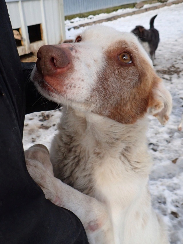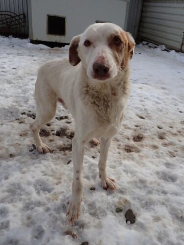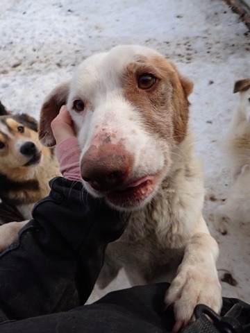 Histoire : attrapé par les dogcatchers. Galak a la queue courte donc pas adoptable en Suisse et est arrivé avec des lésions à la queue, probablement un petit problème de peau, il a reçu du simparica.
