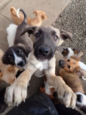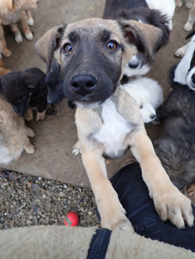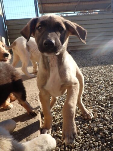 Nos chiots cohabitent avec d’autres chiens, mais ne côtoient pas d’enfants ou de chats au refuge ; au vu de leur jeune âge, nous n’effectuons pas de test chat avec eux puisque nous partons du principe qu’en les sociabilisant correctement, ils peuvent tout à fait s’habituer à la vie de famille avec différentes espèces. C’est à vous de leur apprendre à vivre en harmonie avec vos autres animaux et vos enfants, qui doivent se montrer respectueux à l’égard du nouveau venu. Une cohabitation saine et apaisée met plusieurs semaines, voire mois à se mettre en place. Patience est de mise pour que tout le monde trouve sa place.
