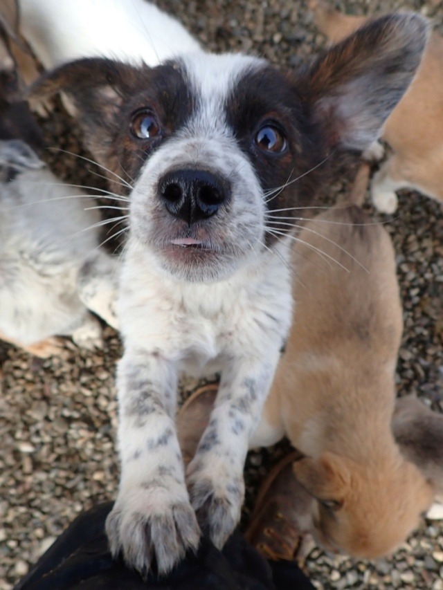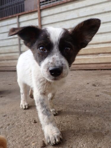 Nos chiots cohabitent avec d’autres chiens, mais ne côtoient pas d’enfants ou de chats au refuge ; au vu de leur jeune âge, nous n’effectuons pas de test chat avec eux puisque nous partons du principe qu’en les sociabilisant correctement, ils peuvent tout à fait s’habituer à la vie de famille avec différentes espèces. C’est à vous de leur apprendre à vivre en harmonie avec vos autres animaux et vos enfants, qui doivent se montrer respectueux à l’égard du nouveau venu. Une cohabitation saine et apaisée met plusieurs semaines, voire mois à se mettre en place. Patience est de mise pour que tout le monde trouve sa place.
