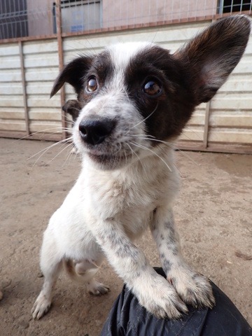 Histoire : trouvé errant avec ses frères FRIPPON, RACOON et FLETCHER. Ils sont arrivés très craintifs au refuge ils ont déjà énormément progressé
