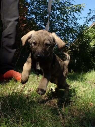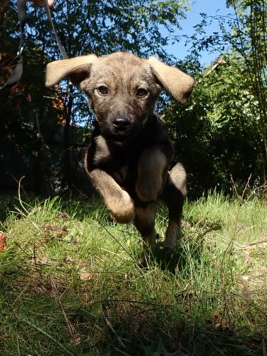 Nos chiots cohabitent avec d’autres chiens, mais ne côtoient pas d’enfants ou de chats au refuge ; au vu de leur jeune âge, nous n’effectuons pas de test chat avec eux puisque nous partons du principe qu’en les sociabilisant correctement, ils peuvent tout à fait s’habituer à la vie de famille avec différentes espèces. C’est à vous de leur apprendre à vivre en harmonie avec vos autres animaux et vos enfants, qui doivent se montrer respectueux à l’égard du nouveau venu. Une cohabitation saine et apaisée met plusieurs semaines, voire mois à se mettre en place. Patience est de mise pour que tout le monde trouve sa place.