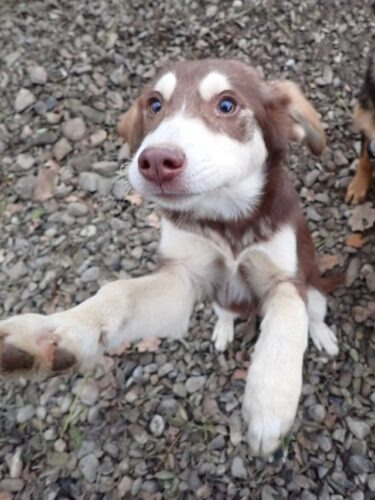 Nos chiots cohabitent avec d’autres chiens, mais ne côtoient pas d’enfants ou de chats au refuge ; au vu de leur jeune âge, nous n’effectuons pas de test chat avec eux puisque nous partons du principe qu’en les sociabilisant correctement, ils peuvent tout à fait s’habituer à la vie de famille avec différentes espèces. C’est à vous de leur apprendre à vivre en harmonie avec vos autres animaux et vos enfants, qui doivent se montrer respectueux à l’égard du nouveau venu. Une cohabitation saine et apaisée met plusieurs semaines, voire mois à se mettre en place. Patience est de mise pour que tout le monde trouve sa place.