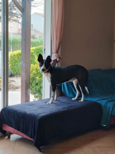 – Selon vous aura-t-il besoin d’une famille ayant déjà un autre chien ou pas ? : Pas nécessaire, il est très sociable et a clairement besoin de voir d’autres chiens, mais si il peut jouer avec des copains en balade c’est suffisant. Toutefois si il y avait un autre chien dans la famille ça lui ferait un compagnon de jeu donc il serait très content.