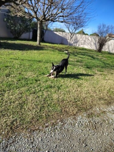 – Sur ses qualités :Kenjy est toujours attentif à son maître. De tel sorte qu’en promenade il se retourne souvent pour vérifier que son humain est toujours là et va bien. Ainsi, il est facile de le lâcher dans des parcs ou des champs sans laisse car il ne fuit pas. Il court et joue mais reste toujours à proximité de son maître. Kenjy est propre, il ne fait jamais ses besoins dedans. Il sait rester seul et ne détruit pas. Il s’entend très bien avec les autres chiens et adore jouer avec des copains chiens. Il a appris « assis » et « panier » qu’il connait maintenant assez bien.