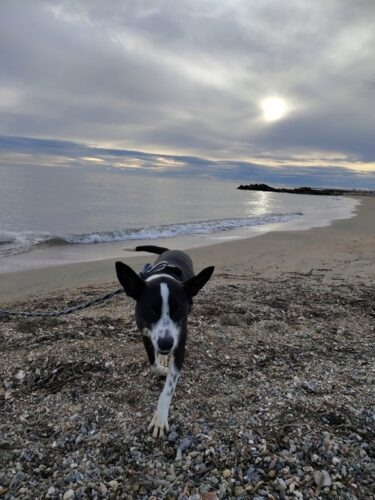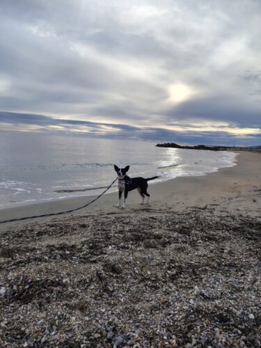 – A t’il du rappel ? Oui Kenjy connait son prénom et l’ordre « au pied ». Toutefois il ne le connaissait pas il y a 3 semaines, je lui apprend au fur et à mesure. Donc actuellement il vient, mais quand il voit des copains ou des gens il ne revient pas au premier rappel disons. Mais il finit toujours pas venir. C’est encore à travailler et à renforcer évidemment.