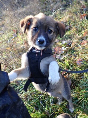Nos chiots cohabitent avec d’autres chiens, mais ne côtoient pas d’enfants ou de chats au refuge ; au vu de leur jeune âge, nous n’effectuons pas de test chat avec eux puisque nous partons du principe qu’en les sociabilisant correctement, ils peuvent tout à fait s’habituer à la vie de famille avec différentes espèces. C’est à vous de leur apprendre à vivre en harmonie avec vos autres animaux et vos enfants, qui doivent se montrer respectueux à l’égard du nouveau venu. Une cohabitation saine et apaisée met plusieurs semaines, voire mois à se mettre en place. Patience est de mise pour que tout le monde trouve sa place.