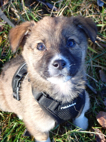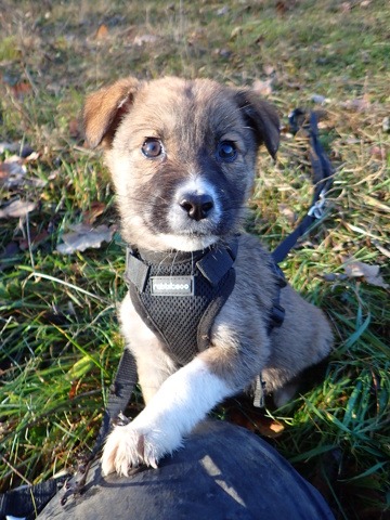 Histoire : trouvé errant avec son frère Maddox et ses soeurs Vidora et Vésubie. Ce sont les petits chiots « parapluie » abandonnés seuls dans la forêt
