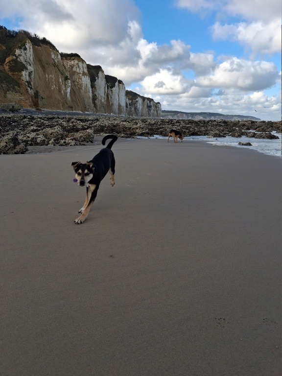 Caractère : 7 novembre 2025 : Milo profite toujours de balades sur la plage, en ville, en forêt… Il marche bien en laisse, par contre Milo est un vrai glouton qui tente de toujours ramasser parterre ce qui est comestible. Il grandit bien, je pense même qu’il atteint la catégorie « moyen + », je tâcherai d’aller le peser prochainement. Milo est toujours aussi expressif, il aboie quand il joue, quand il entend du bruit, parfois quand il aperçoit des personnes ou chiens au loin etc. Même quand il dort il arrive à s’exprimer. On multiplie les contacts avec les chiens, sur la plage il lui arrive de courir en liberté avec d’autres chiens, il cherche à jouer, aucune agressivité. Il aime aller passer un peu de temps dans le jardin, même seul. Il prend le chat de la maison pour son jouet, le chat reste sur ses gardes mais ils s’entendent quand même plutôt bien.
