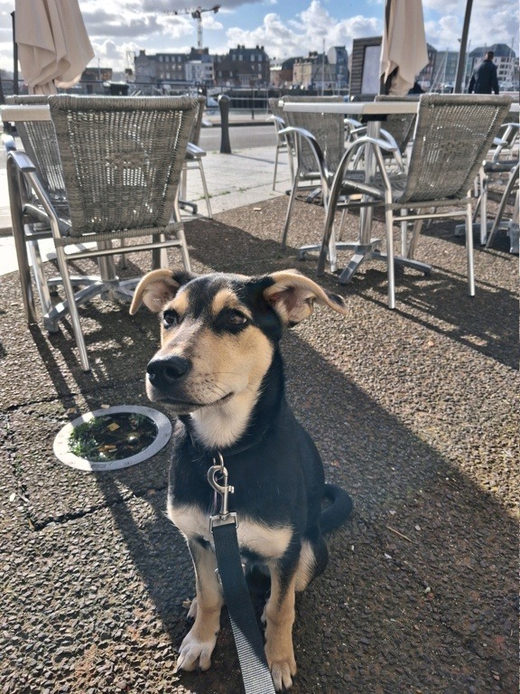 À partir de la fin de semaine, nous commencerons à fréquenter des endroits plus animés pour l’habituer progressivement à la présence d’autres humains et chiens, car il reste encore un peu réservé lorsqu’il en croise.