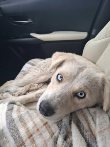 Histoire : aperçue errante par une bénévole à Roman qui nous a demandé de l’aide car elle l’a prise en pitié, nous avons accepté de le prendre en charge. Elle boîte d’une patte, elle a une grosse plaie suturée à l’intérieur de la cuisse qui doit expliquer sa boiterie