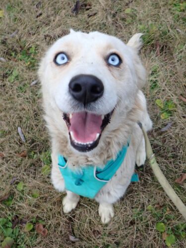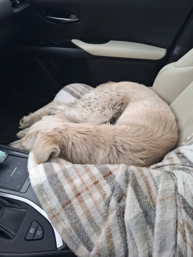 Histoire : aperçue errante par une bénévole à Roman qui nous a demandé de l’aide car elle l’a prise en pitié, nous avons accepté de le prendre en charge. Elle boîte d’une patte, elle a une grosse plaie suturée à l’intérieur de la cuisse qui doit expliquer sa boiterie