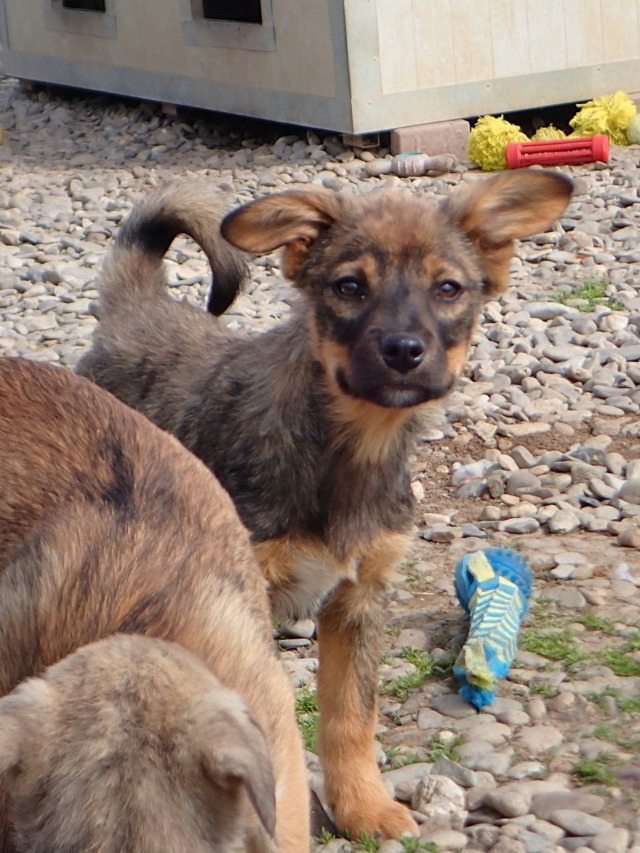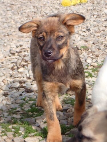 Nos chiots cohabitent avec d’autres chiens, mais ne côtoient pas d’enfants ou de chats au refuge ; au vu de leur jeune âge, nous n’effectuons pas de test chat avec eux puisque nous partons du principe qu’en les sociabilisant correctement, ils peuvent tout à fait s’habituer à la vie de famille avec différentes espèces. C’est à vous de leur apprendre à vivre en harmonie avec vos autres animaux et vos enfants, qui doivent se montrer respectueux à l’égard du nouveau venu. Une cohabitation saine et apaisée met plusieurs semaines, voire mois à se mettre en place. Patience est de mise pour que tout le monde trouve sa place.