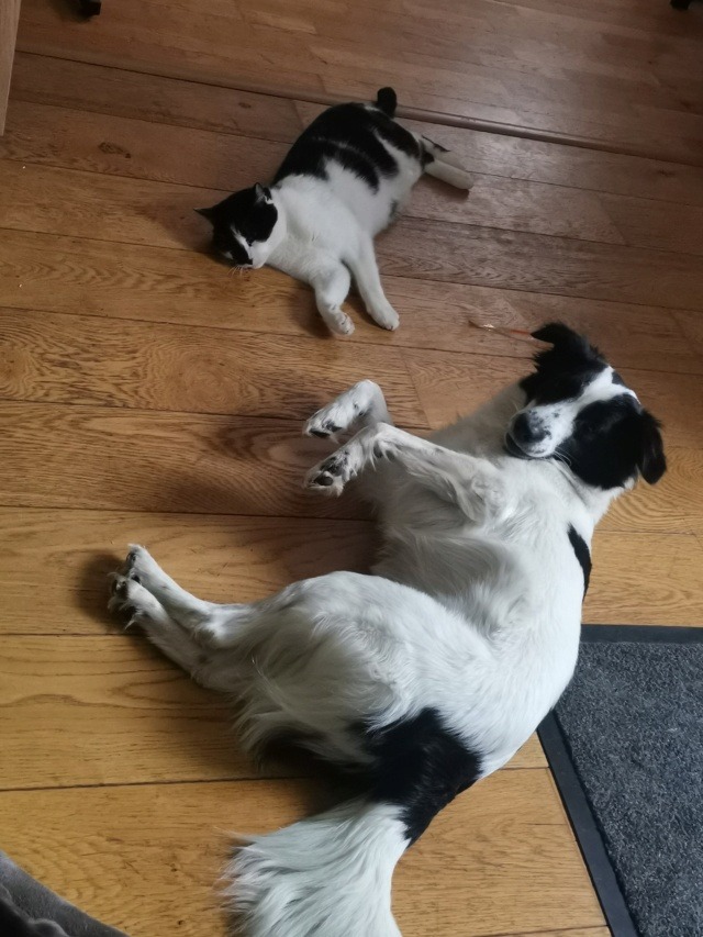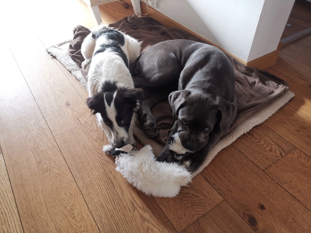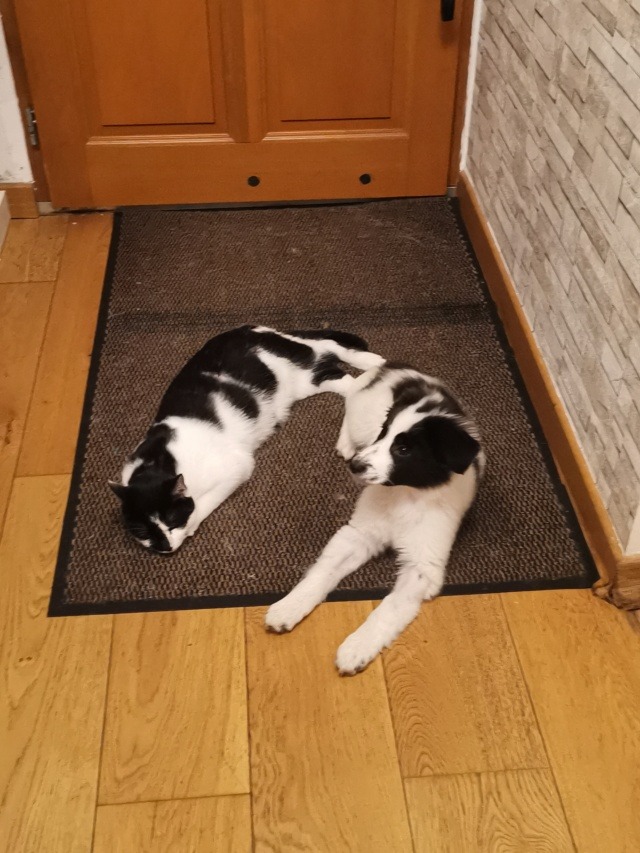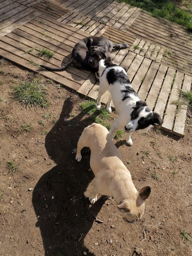 Panga peut vivre avec un autre chien sans problème après un temps d’adaptation. Elle vie actuellement avec 2 femelles chien, 3 chats, poules…….