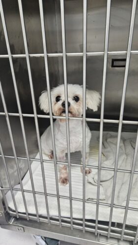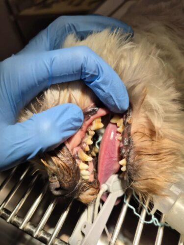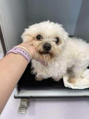 Histoire : elle a été trouvée dans la rue par des gitans qui l’ont amenée à la clinique pour vermifuge puce etc mais quand ils ont su le prix ils ont voulu la remettre à la rue donc les vétos l’ont gardée. Pelote a eu un détartrage et quelques dents abimées retirées