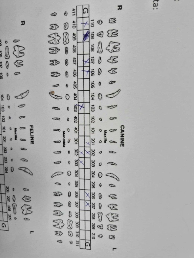 Histoire : elle a été trouvée dans la rue par des gitans qui l’ont amenée à la clinique pour vermifuge puce etc mais quand ils ont su le prix ils ont voulu la remettre à la rue donc les vétos l’ont gardée. Pelote a eu un détartrage et quelques dents abimées retirées