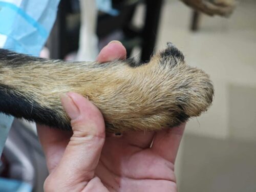 Histoire : Attrapée par les dogcatchers de Pascani. Popi semble avoir beaucoup souffert déjà dans sa vie : elle a un bout d’oreille en moins, il lui manque tous les doigts / toutes les griffes d’une patte, elle a également une hernie ombilicale (bénin)