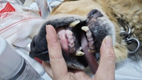 Histoire : abandonné par son propriétaire. Il a toutes les incisives complètement limées…
